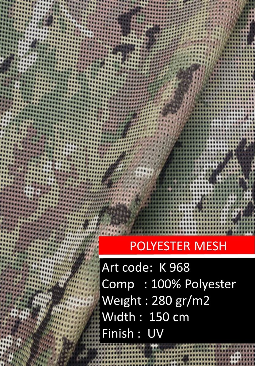 Fabric Components : Polyamide,Polyester,Cotton,Nylon/Cotton,Pes/Cotton,Elastane,Spandex,3D Spacer Mesh