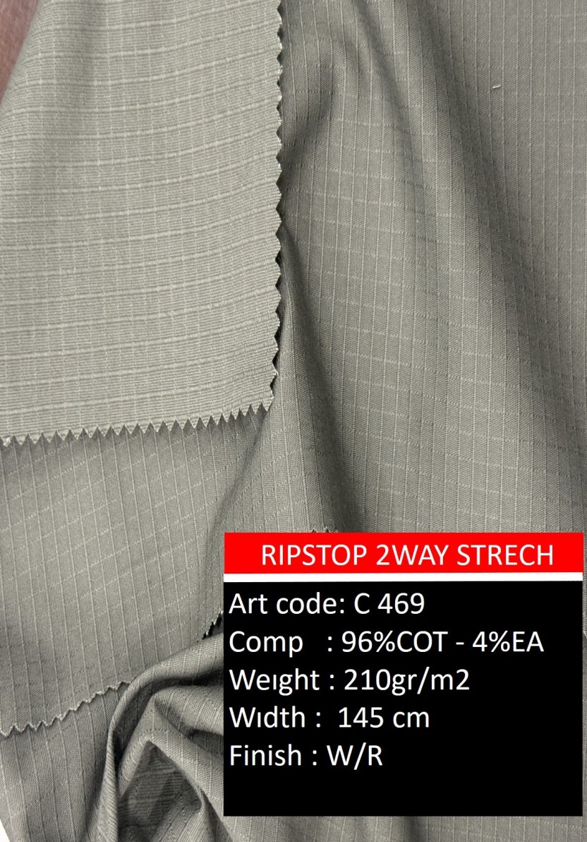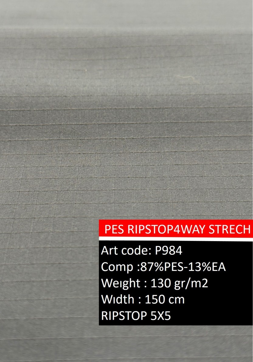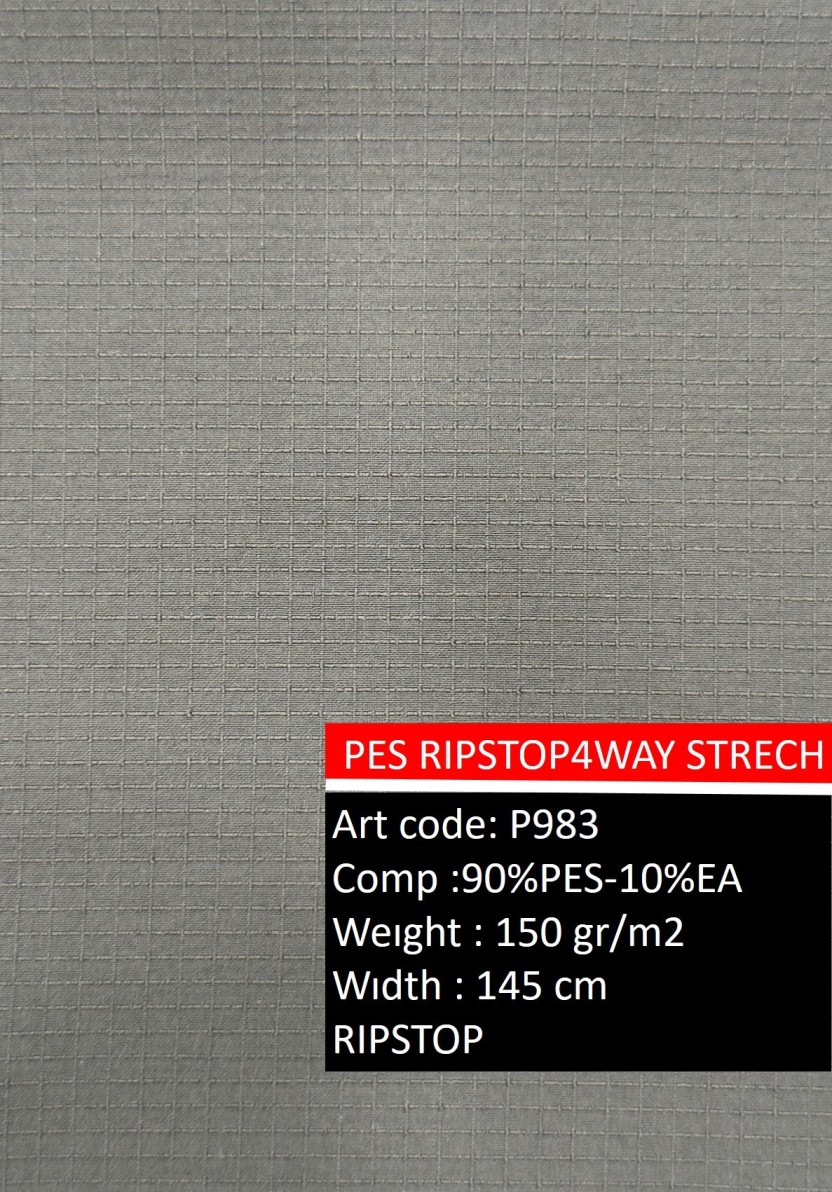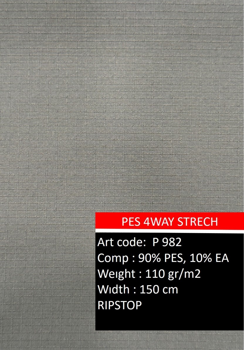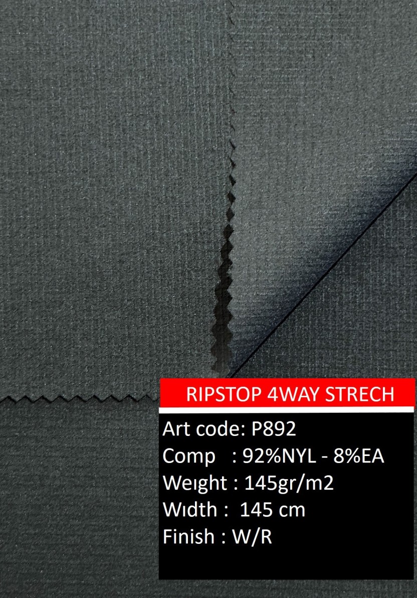 -90%Polyester-10%Elastane,4 way strech Ripstop and various compositions
